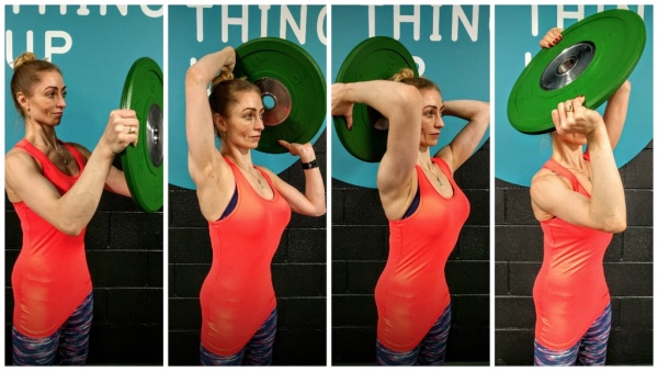 For performing halo, you need to start by kneeling on your knees. Keep your knees slightly wider than your hips. Hold dumbbells in both your hands and keep them directly in front of your chest; keep your elbows pointed down to your side. Slowly circle your dumbbell around your head and bring it back in front of your chest. Here you have completed one rep. Make sure you complete three sets with ten reps in each direction. Rest only when needed. This exercise increases your shoulder mobility, increases blood flow and synovial fluid at the joint, and increases motion.