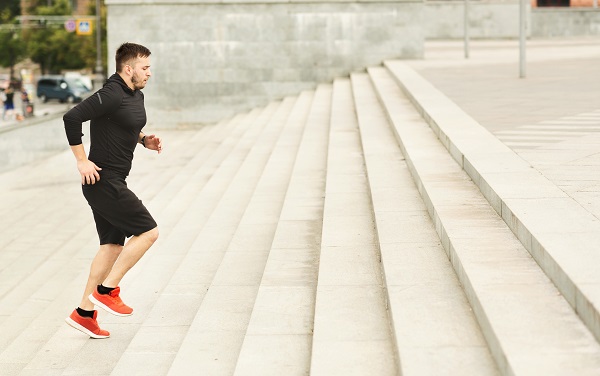 If you’re going upstairs at a moderate pace but not pushing yourself too hard, you will burn about 200-300 calories per hour, depending on your weight and how long you spend moving to go upstairs. However, if you try to go up the stairs as fast as possible for 30 seconds and then rest until your heart rate comes back down, this will bring on a more intense cardio workout and burn around 600-800 calories per hour, depending on your weight. If you weigh less, you’ll burn slightly more calories the faster you go upstairs.